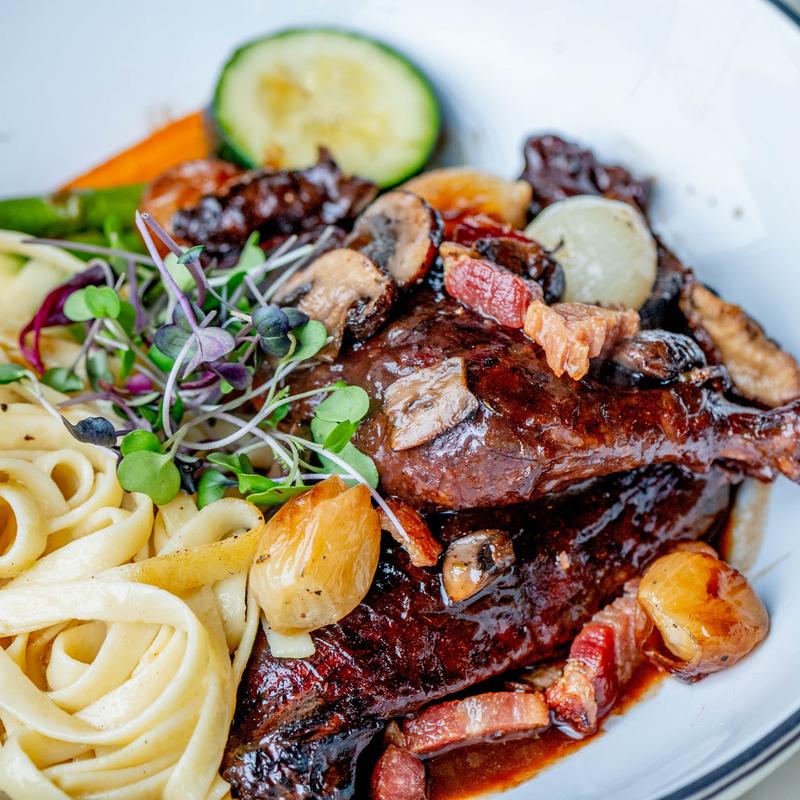 Red Wine Braised Chicken, Bacon & Mashed Potato