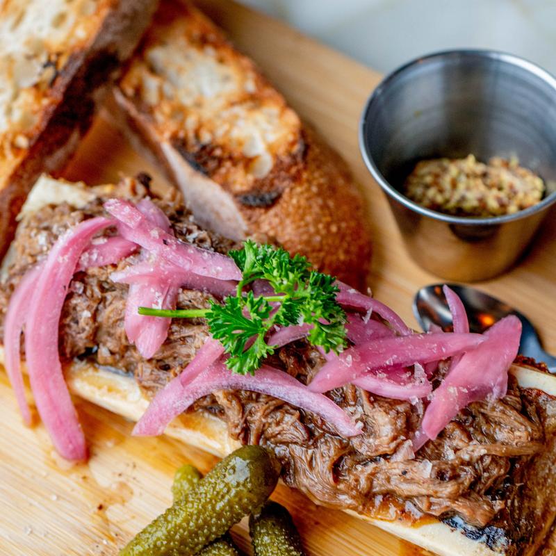 Roasted Bone Marrow, Beef Cheek, Veal Reduction, and Grilled French Bread