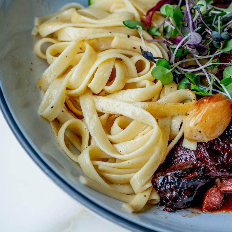 red wine braised short ribs, mashed potatoes